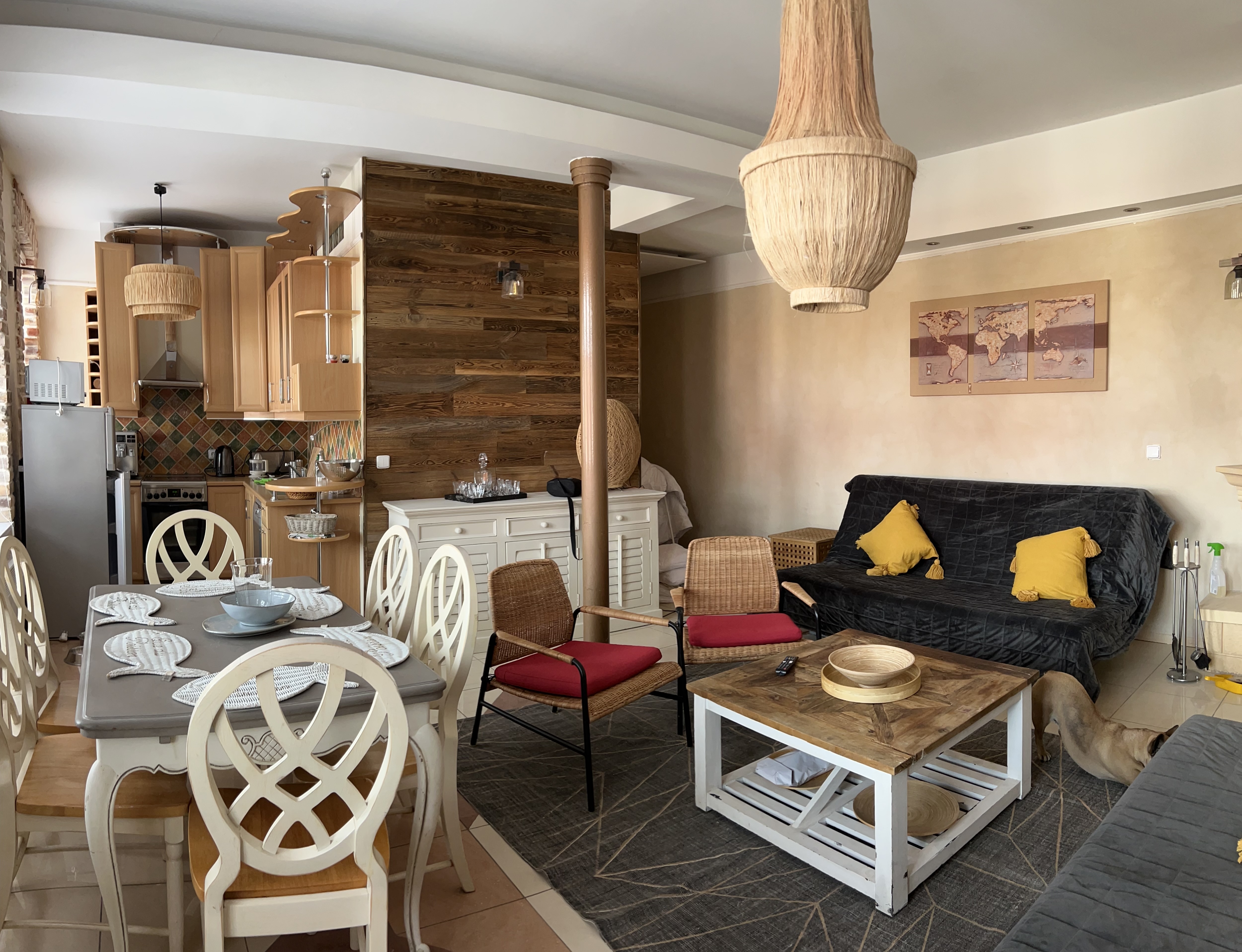 Do Państwa dyspozycji komfortowy apartament dla 6 osób (65m2), składający się z salonu z kuchnią otwartą, drugiego pokoju oraz łazienki.